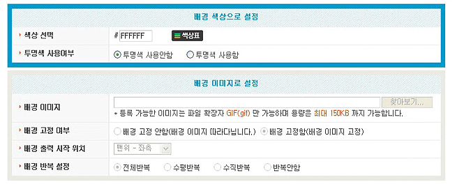 ¼îÇθô ¹è°æ¼³Á¤ 1.¼îÇθô ³»ºÎ/¿ÜºÎ ¹è°æ»öÀ» »ö»ó ¶Ç´Â À̹ÌÁö·Î Àû¿ëÇÒ ¼ö ÀÖ½À´Ï´Ù. 2.»ö»ó ¼±ÅÃÀº »ö»óÄÚµå¹øÈ£¸¦ ÀÔ·ÂÇÏ¿© »ç¿ëÇÒ ¼ö ÀÖÀ¸¸ç, »ö»óÇ¥¸¦ ÀÌ¿ë½Ã ÄÚµå¹øÈ£¸¦ È®ÀÎÇÒ ¼ö ÀÖ½À´Ï´Ù. |